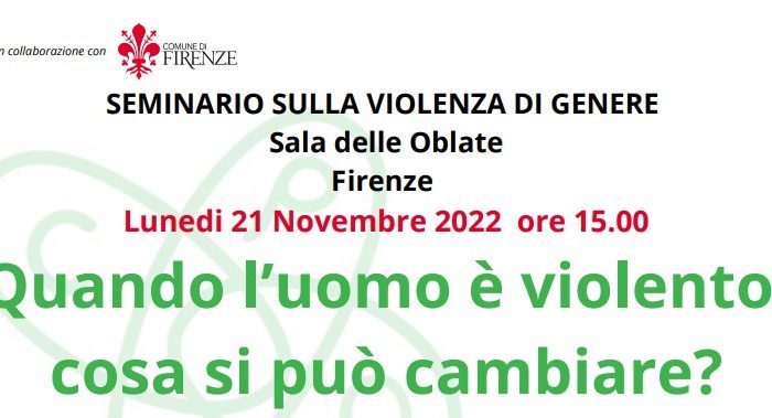 SEMINARIO SULLA VIOLENZA DI GENERE: "Quando l’uomo è violento, cosa si può cambiare?" Sala delle Oblate Firenze Lunedi 21 Novembre 2022 ore 15.00 Scarica locandina